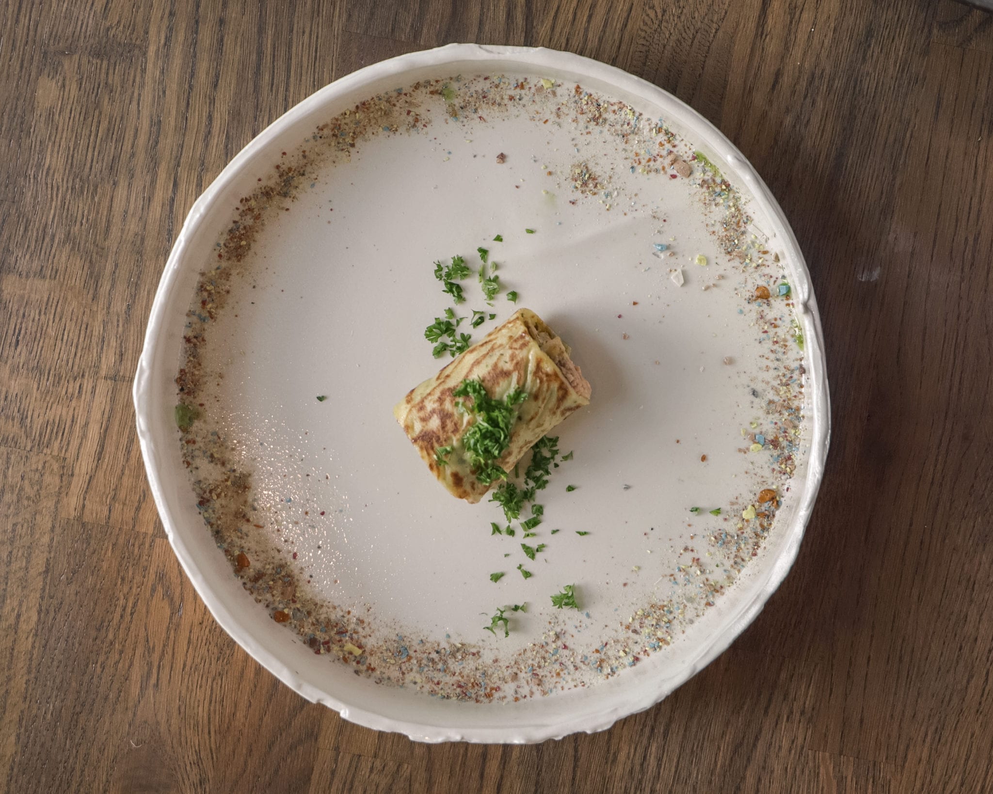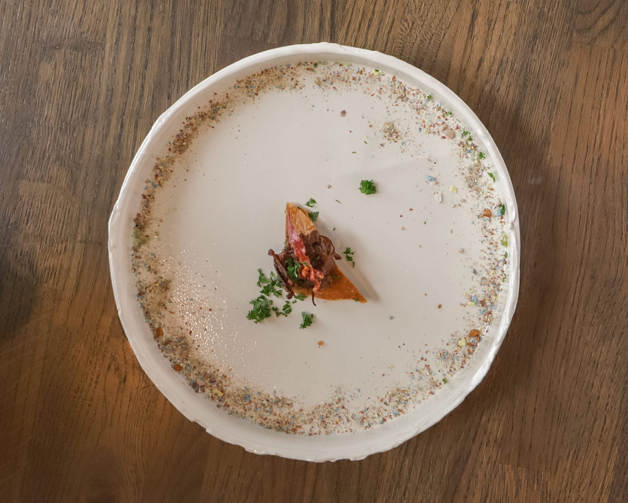 Rækjukóngur með jarðskokka ragú, hrognum og froðu 2020